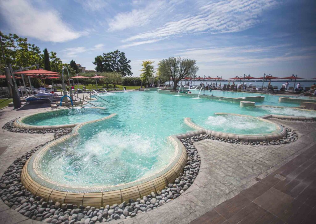 Partiamo da Lazise per visitare Il Quellenhof Luxury Resort, che ha portato sul Lago di Garda l’eccellenza dell’ospitalità altoatesina in una veste architettonica contemporanea. Circondato da ulivi e vigneti, il resort fonde design e natura, con piscine sospese e grandi superfici vetrate. La Onda spa, firmata da creAtelier di Andreas Kofler, si estende su 2.000 mq. e offre una zona adulti, con Skypool e sauna multimediale, e una zona family con saune tessili e spazi pensati per il comfort di tutti. Completano l’offerta una piscina sportiva, una Whirlpool, una piscina stagionale per bambini e un incredibile biolago balneabile immerso in un giardino mediterraneo dove è possibile rilassarsi osservando i pesci nuotare. Numerose opere d’arte contemporanea italiana arricchiscono gli spazi della spa.