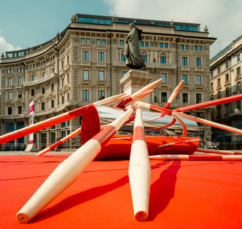5. Michele Perlini: “Equilibria” in Piazza Cordusio, an installation using natural materials to explore the fragile balance between man and nature.