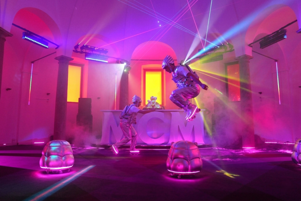 1. Atelier Biagetti for MCM: A galactic-themed immersive installation titled “Disco on Mars,” exploring fluid concepts of home through metallic reflections and dreamlike atmospheres.