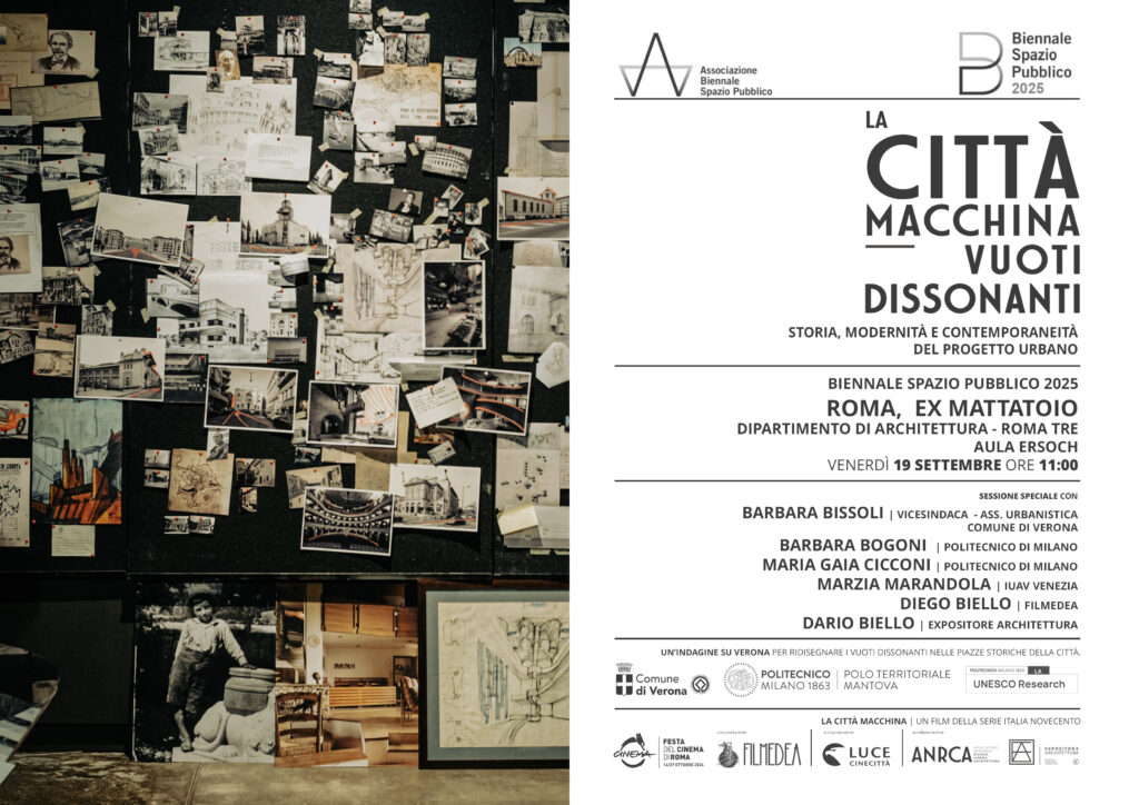Two main focuses will be presented. On one side, the documentary La città macchina, directed by Dario Biello and already premiered at the Rome Film Festival, featuring contributions from prominent voices such as Mario Botta, Tobia Scarpa, and Kjetil Trædal Thorsen of Snøhetta. On the other, a research project by the Politecnico di Milano dedicated to Verona, analyzing squares, streets, and public gardens in search of new functions and identities for spaces today underused or neglected.