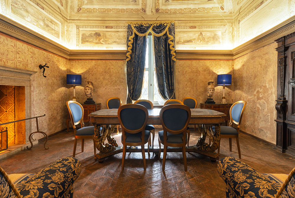 immersed in a 13,000 square metre park, rich in history, with halls embellished with frescoes by the